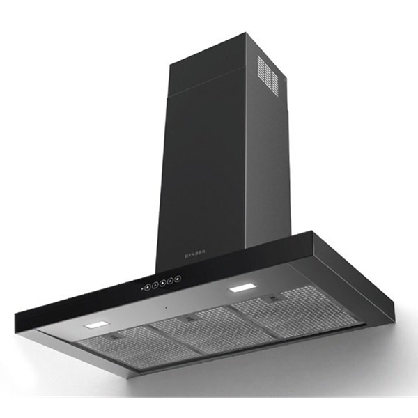 Electrolux dikey davlumbaz etkili olduğu kadar zariftir. Parlak siyah cam yüzey, ona modern ve