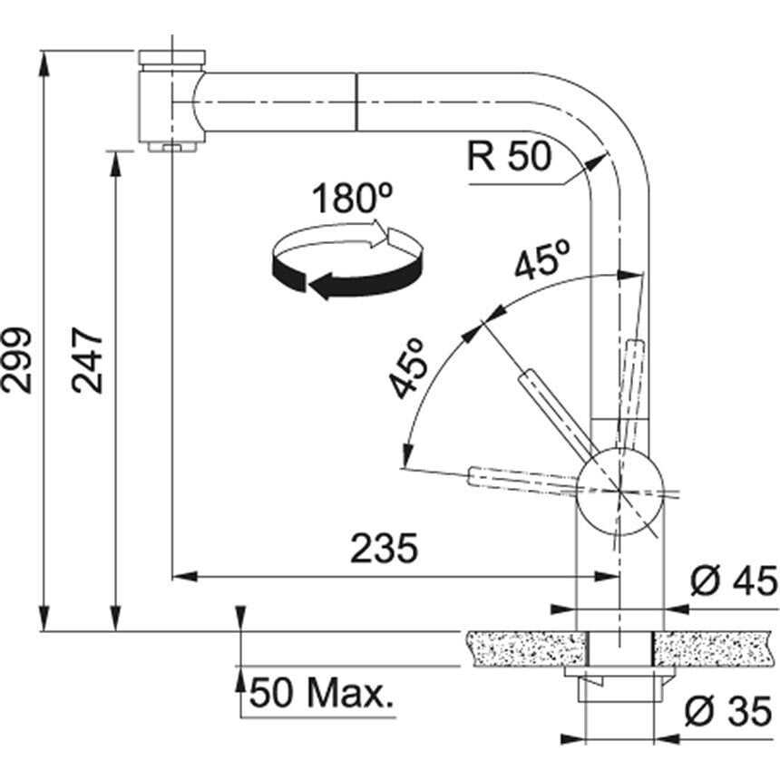 | Armatür deliği çapı: 35 mm |