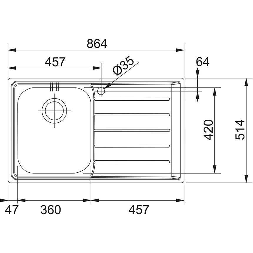 Franke Neptun NEX 211-86 Çelik Evye ,Tek Gözlü, Sağ Damlalıklı,Tezgaha Sıfır,Tezgah Üstü