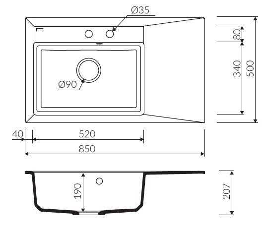 Eviye Derinliği 500 mm
