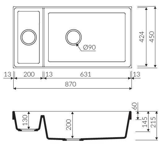 Eviye Derinliği 450 mm
