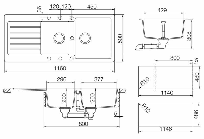 TYP D 200 A Alpina Tezgahüstü 2 Göz Modern Evye